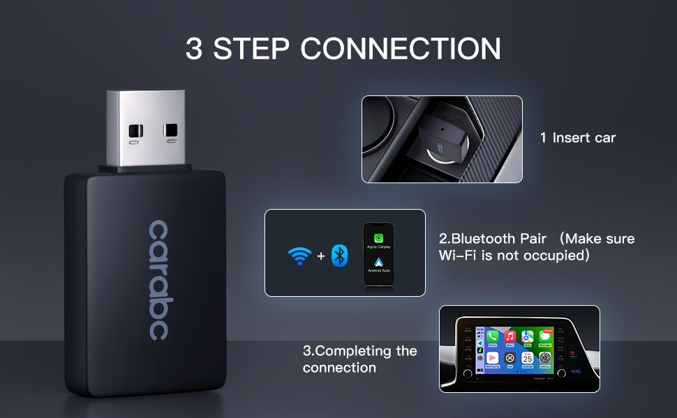 Wireless Connection: Connects your smartphone to your car’s infotainment system without the need for cords.
